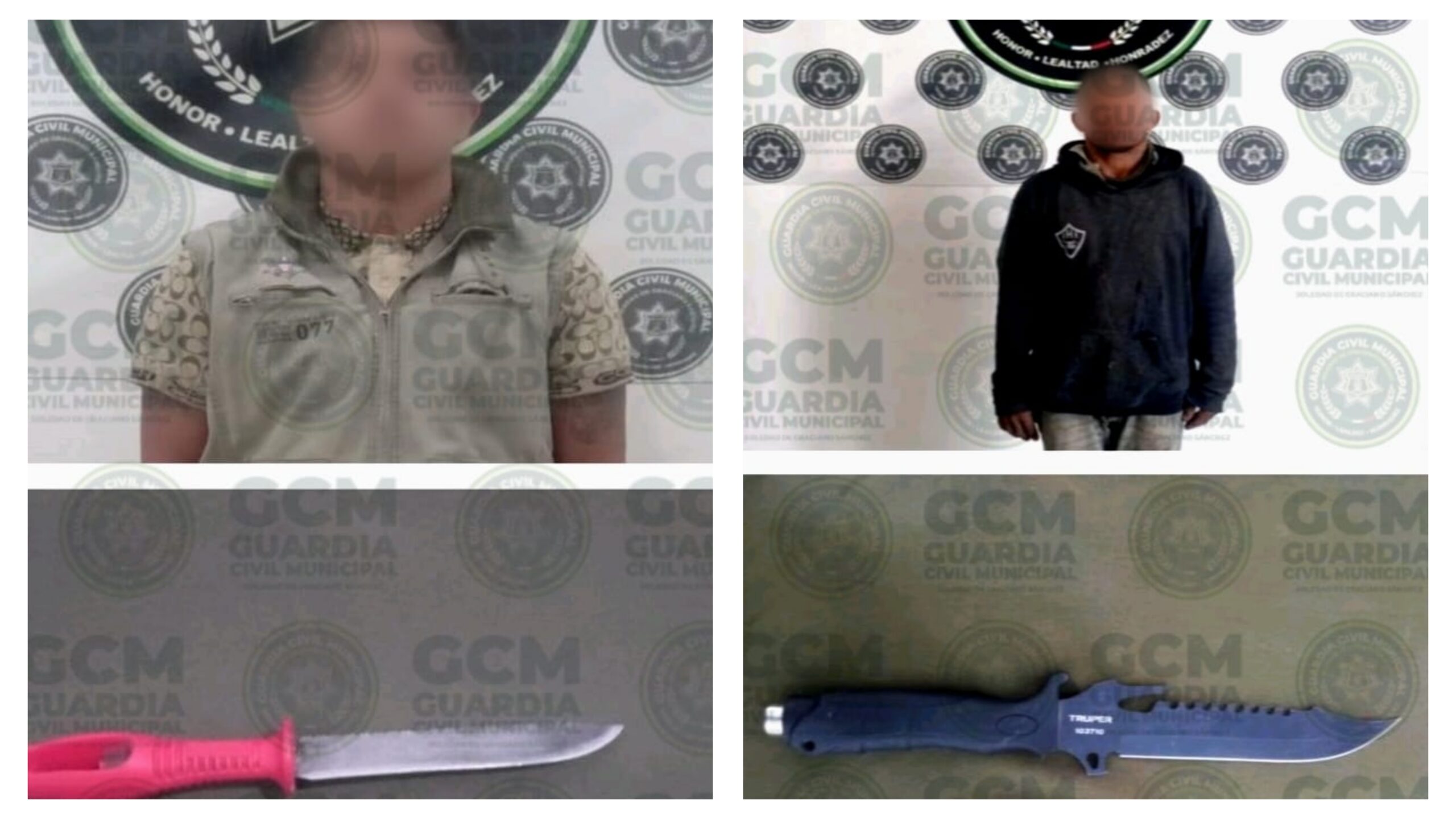 Por otra parte, en la calle Azucena, en la colonia La Constancia, oficiales municipales tuvieron contacto con quien dijo llamarse Cristopher «N» de 29 años, quien alteraba el orden, localizándole un objeto metálico afilado con las características de un cuchill0.