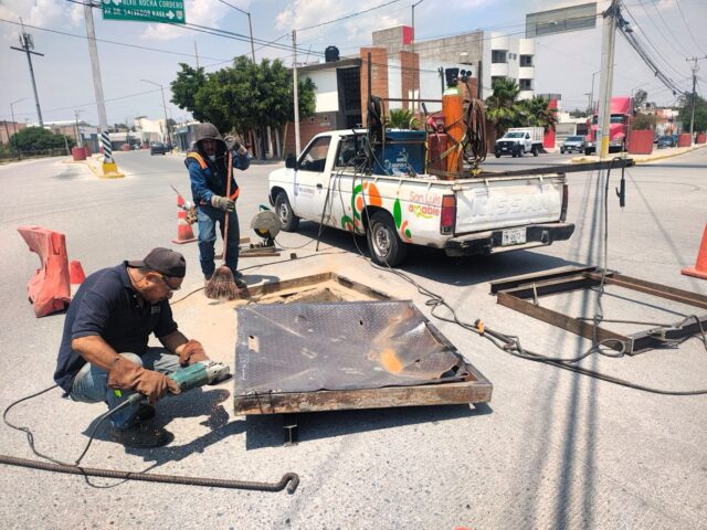 En este sentido, se llevaron a cabo trabajos de herrería para la reparación de rejillas y tapas de registro en la intersección de Urbano Villalón con Mariano Jiménez, en la colonia Balcones del Valle, donde se realizó la fabricación y sustitución de tapa de registro, mejorando las condiciones de seguridad tanto para peatones como para automovilistas que transitan por lazona.