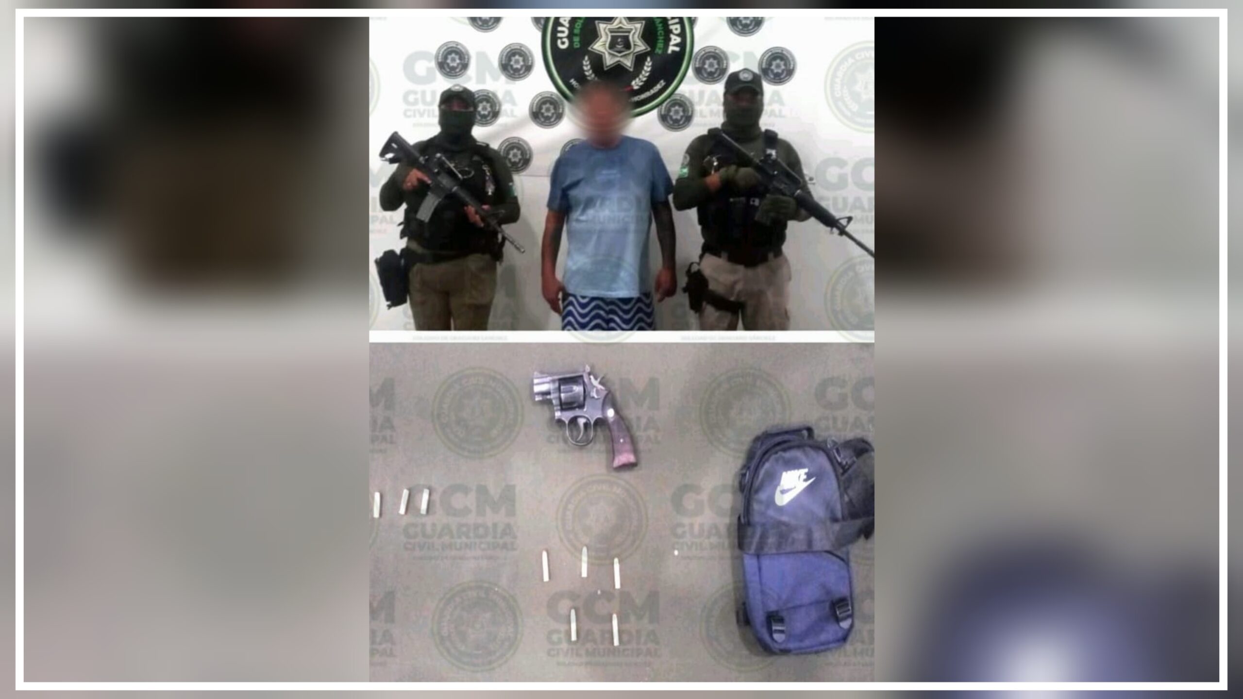 En el lugar fue ubicado un individuo que alteraba el orden, y después de entrevistarlo se identificó como Juan «N» de 44 años, a quien se le encontró un arm4 de fuego calibre .38, abastecida con cinco cartuch0s útiles.